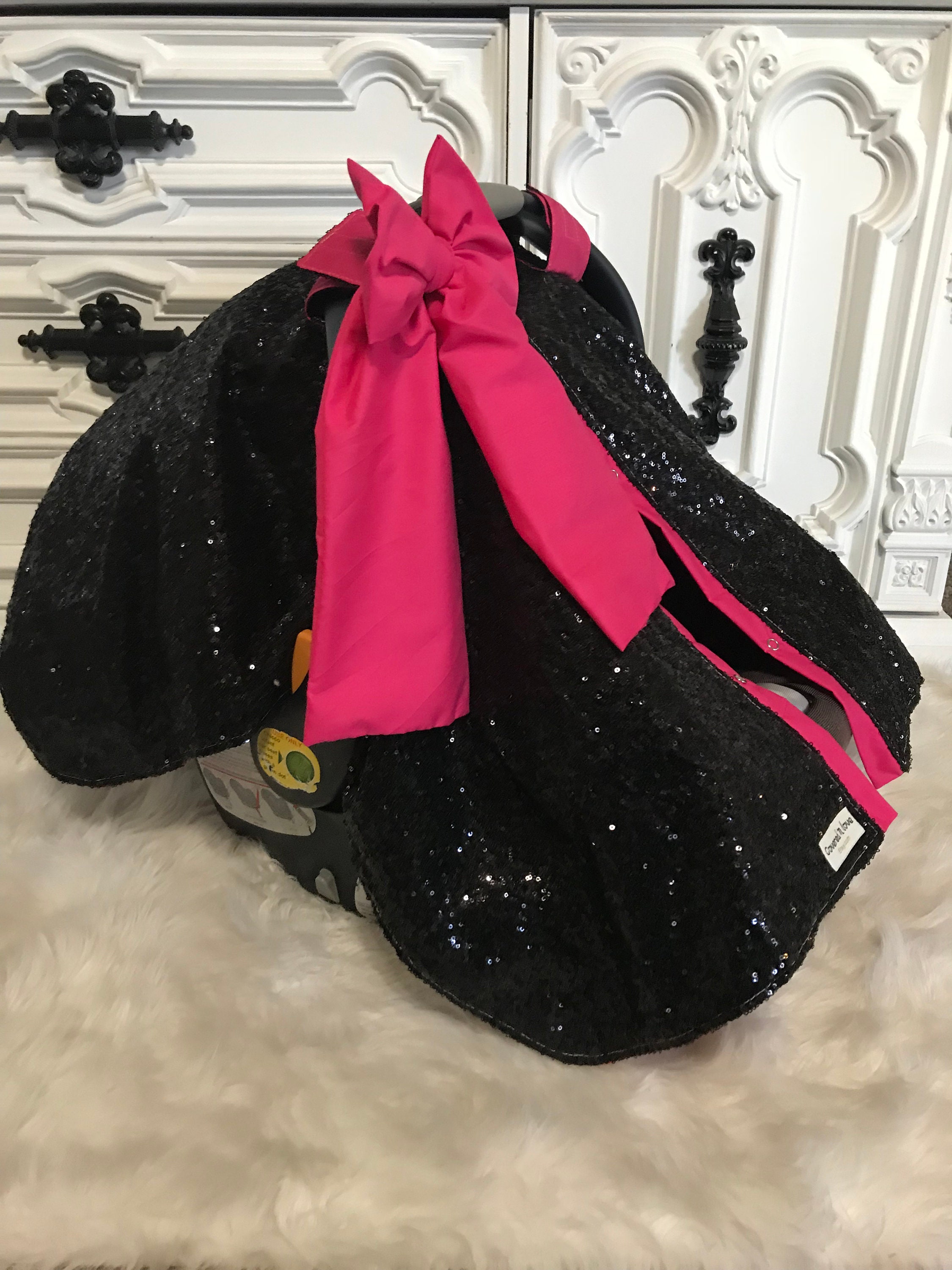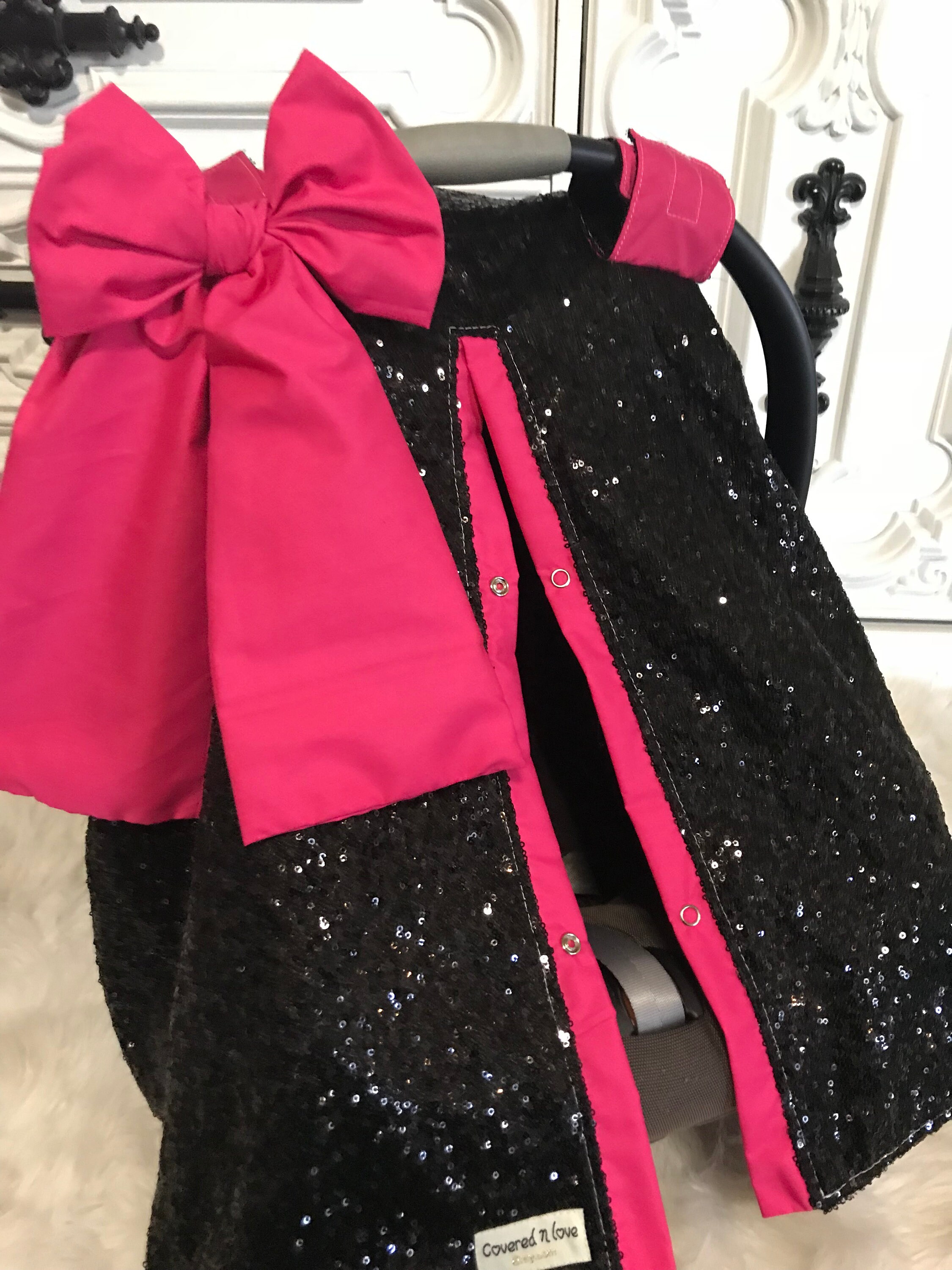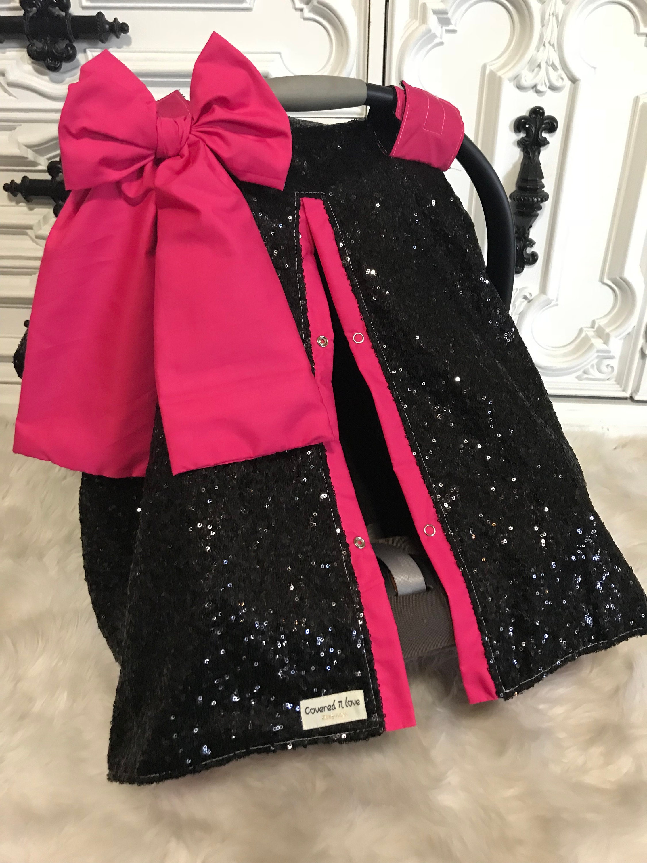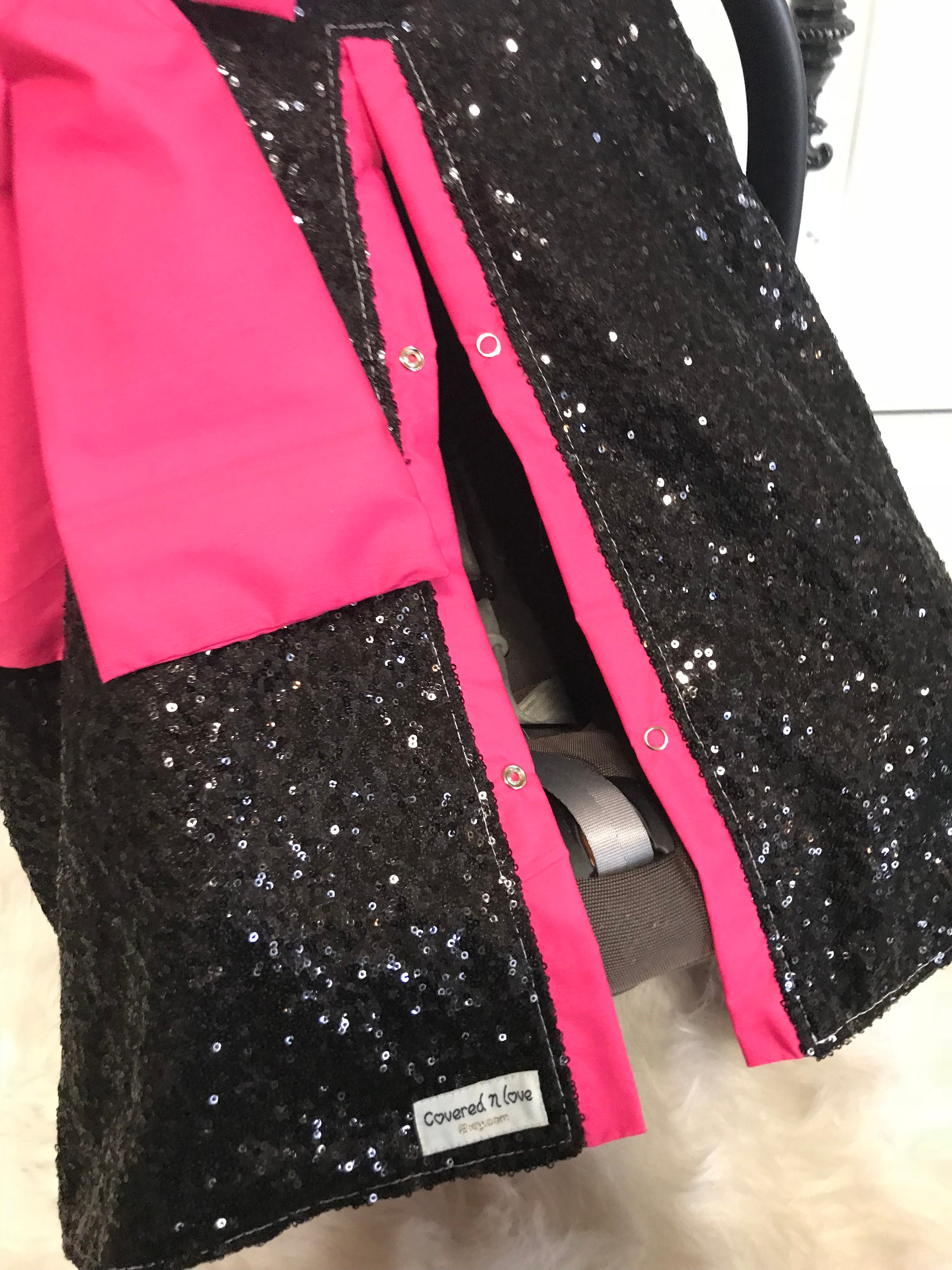 Black and Hot Pink sparkle car seat canopy / carseat cover / carseat canopy / ooak / sequin / infant car seat cover / silver / sparkle