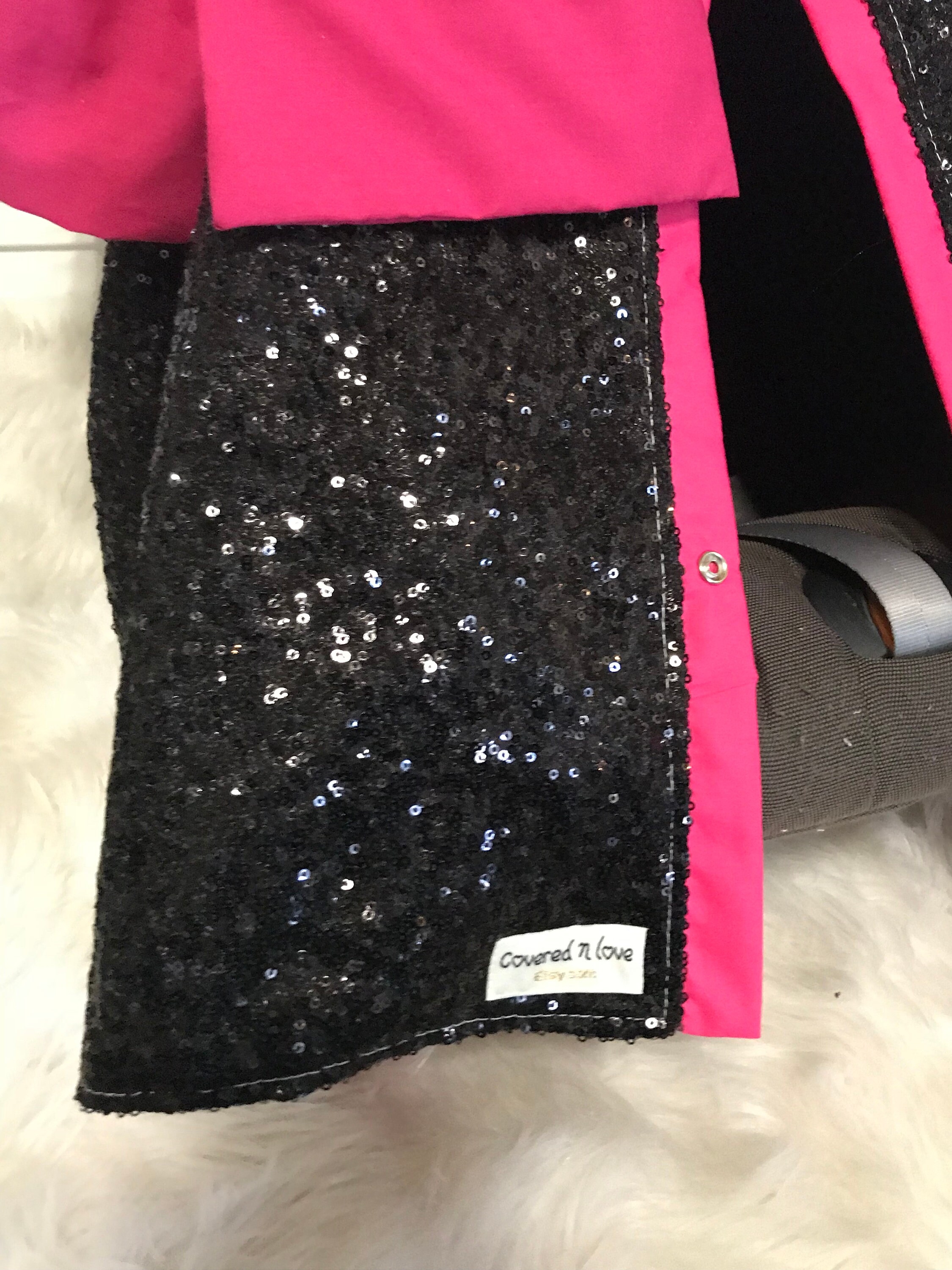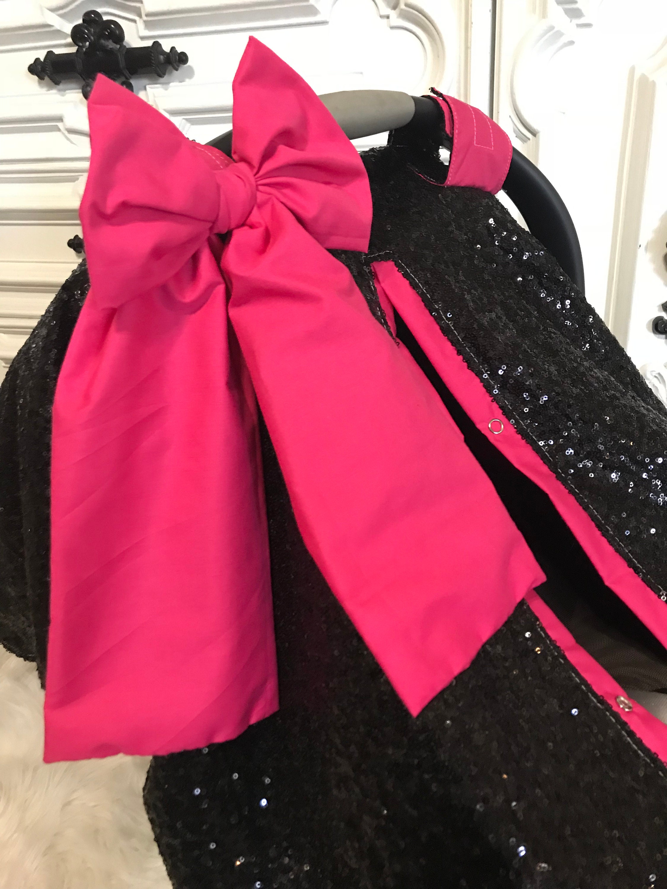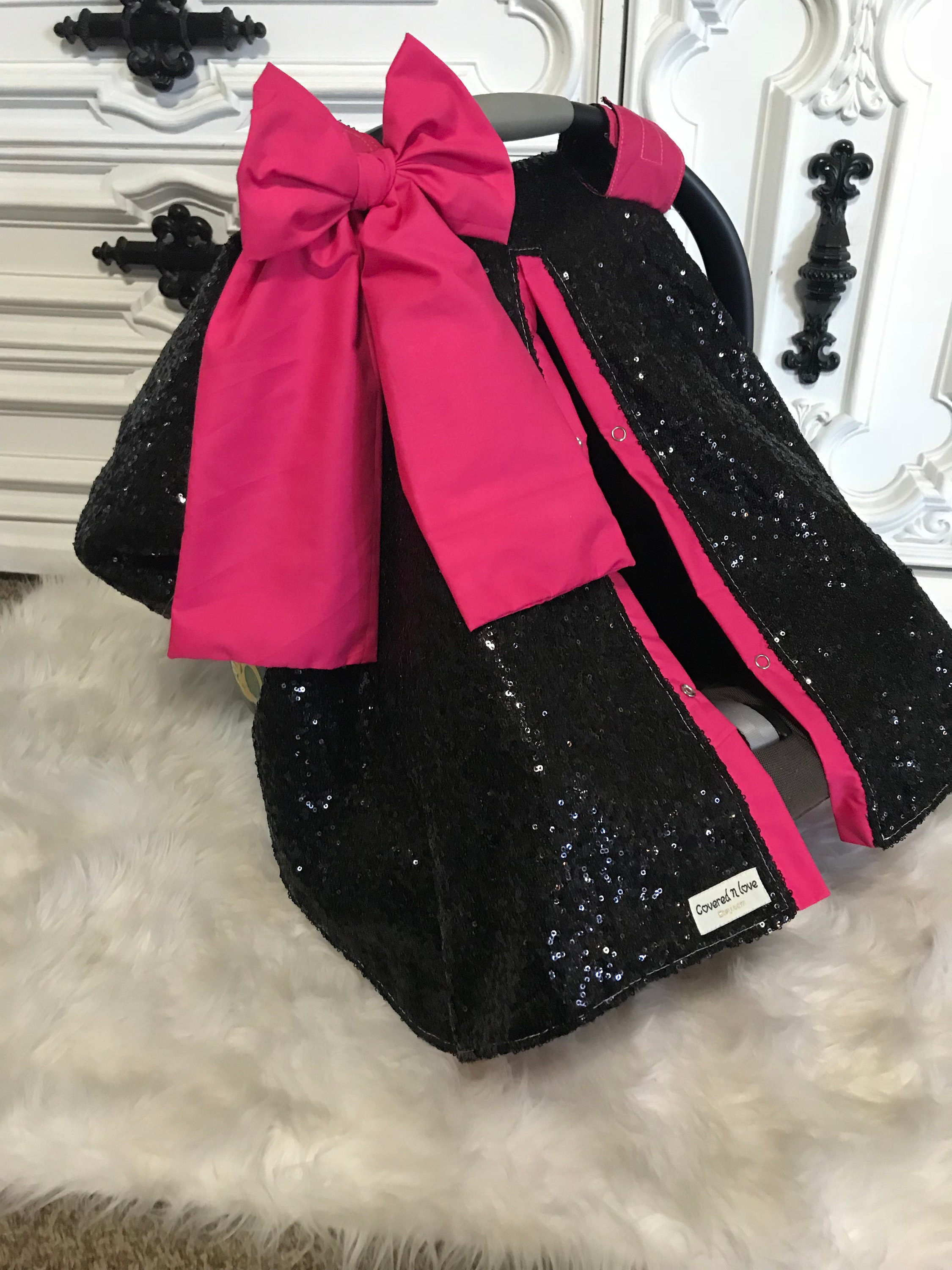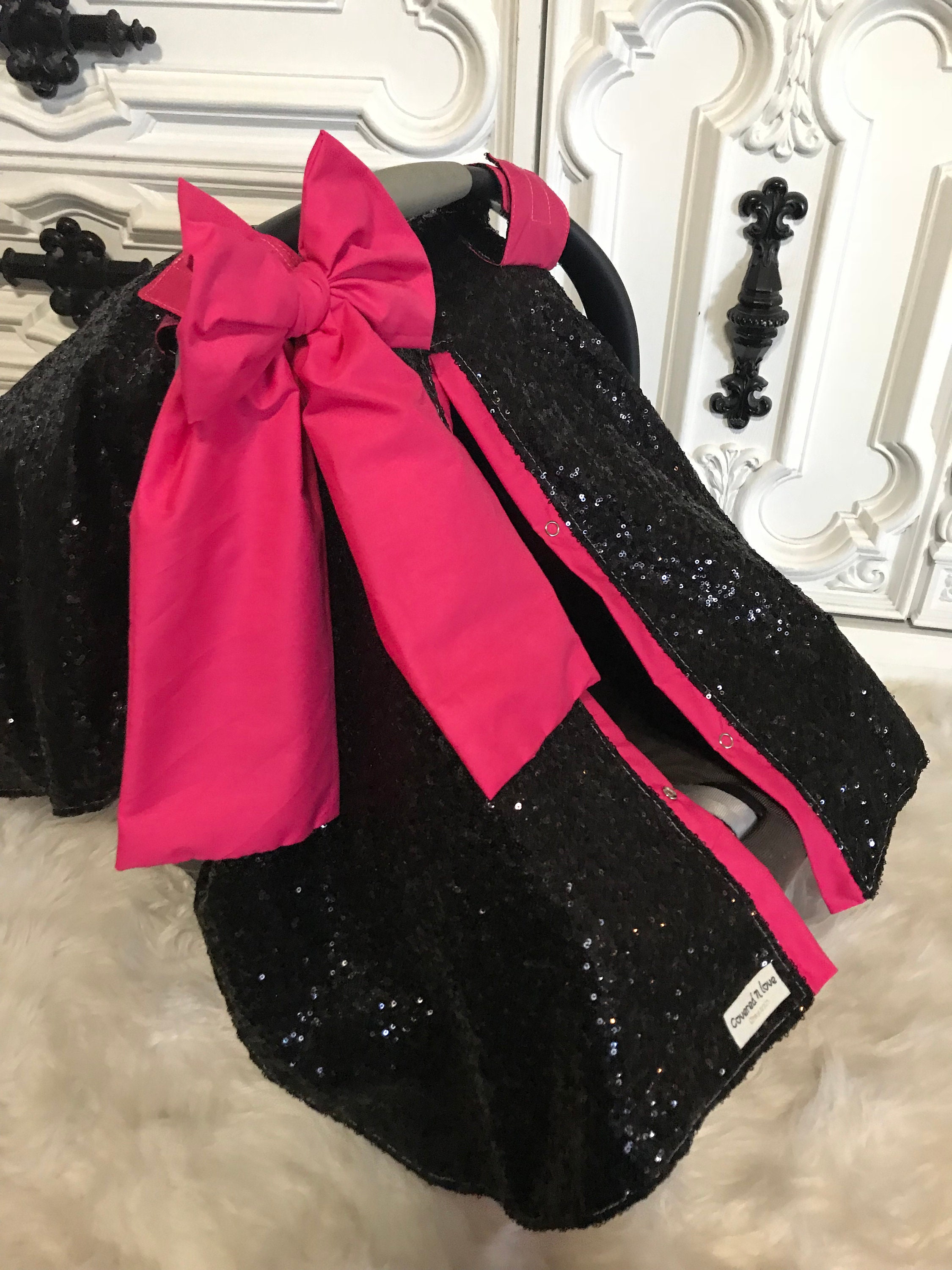 Black and Hot Pink sparkle car seat canopy / carseat cover / carseat canopy / ooak / sequin / infant car seat cover / silver / sparkle